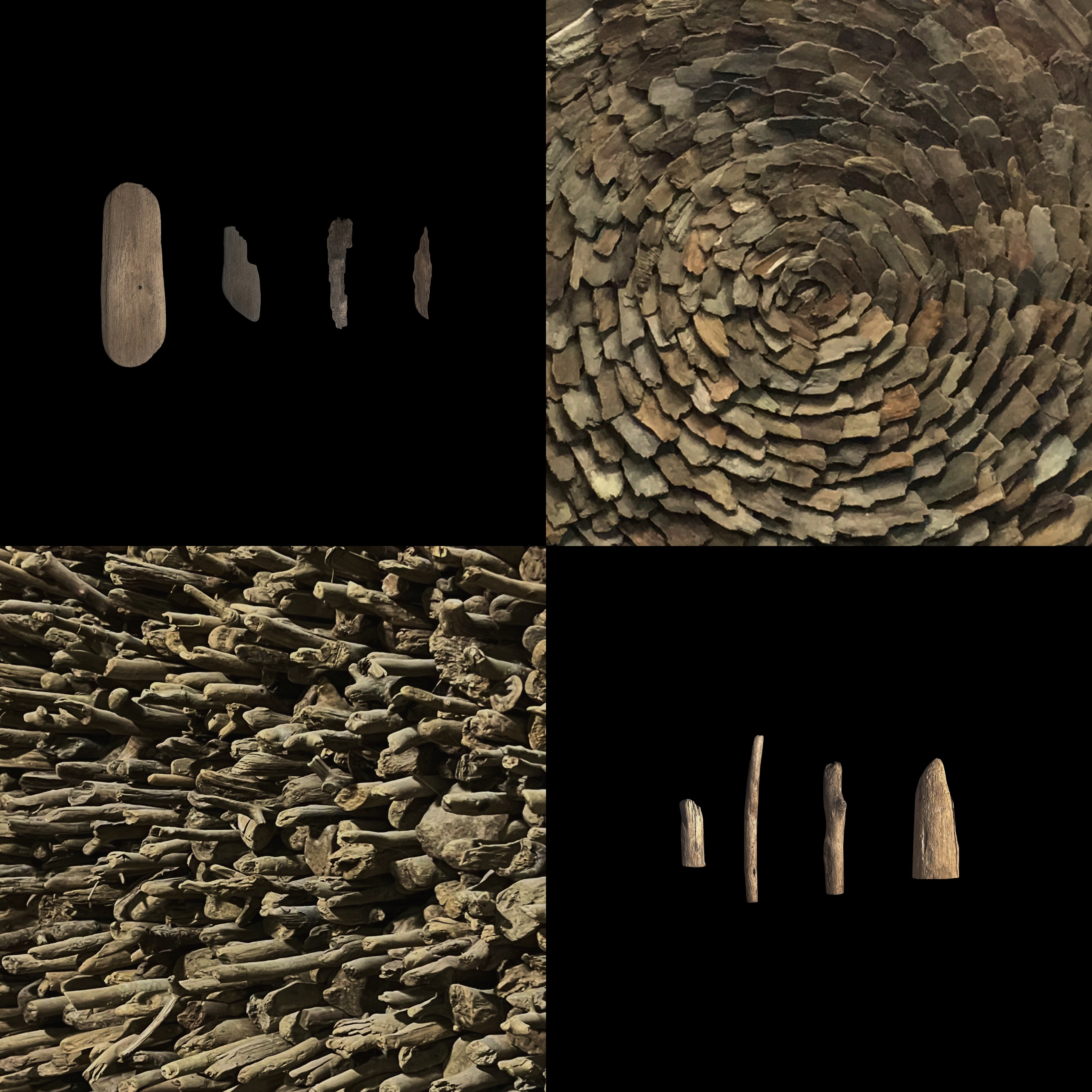 Each driftwood piece carries its own story. Through shape, color, and memory, these fragments—once part of different trees—are assembled into biomorphic formations that invite us to reflect on life as an evolving whole. Just like our memories, thoughts, and actions, these pieces come together to form something greater.